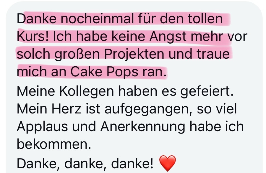 „Die Menschen, die das probiert haben, die waren einfach unheimlich begeistert und glücklich, sie haben mich danach gefragt: „Wie hast du die denn gemacht, die Cake Pops sind unfassbar toll.“