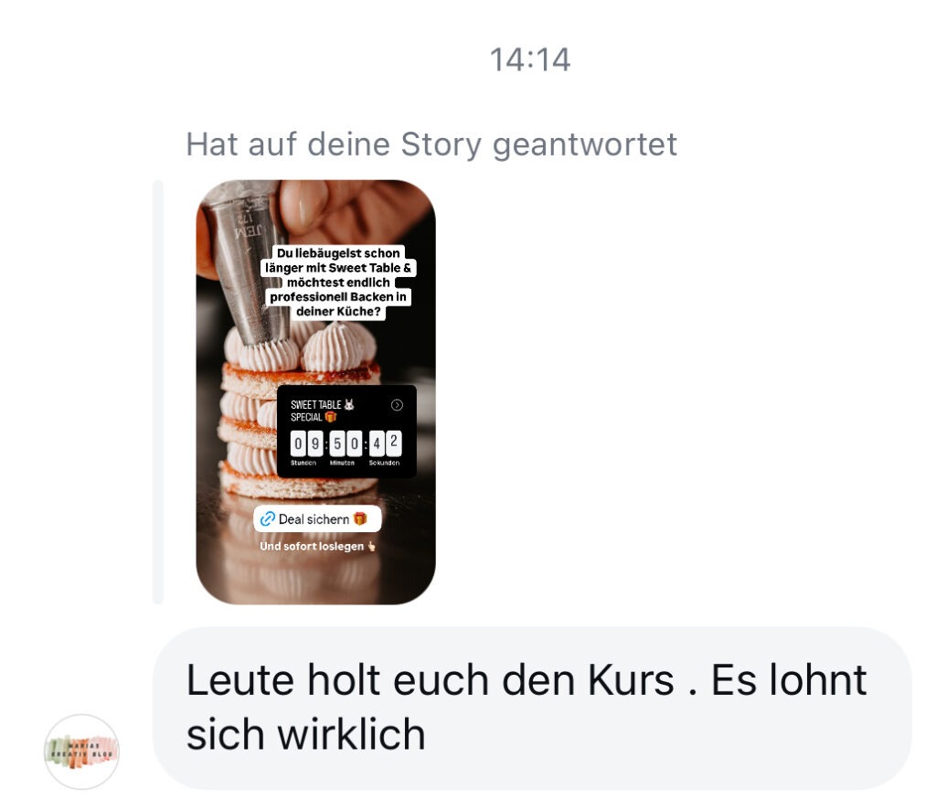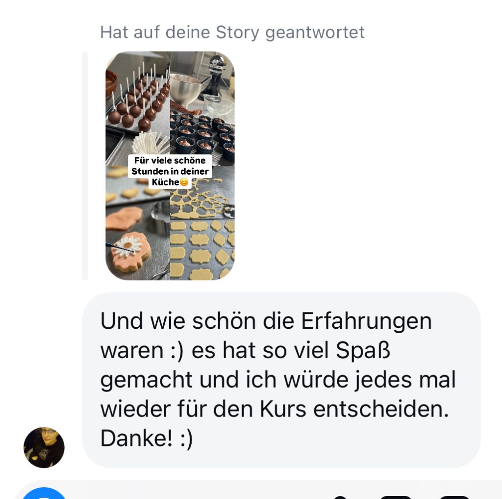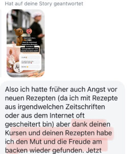 Ich empfehle definitiv diesen Kurs weiter. Ich habe so eine Backfreude wiederentdeckt für mich und für andere, die das ganze essen dürfen.